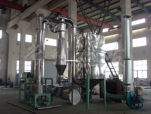 ★干燥氣體進(jìn)入干燥機(jī)底部,產(chǎn)生強(qiáng)烈的旋轉(zhuǎn)氣流,對(duì)器壁上物料產(chǎn)生強(qiáng)烈的沖刷帶出作用,消除粘壁現(xiàn)象。
