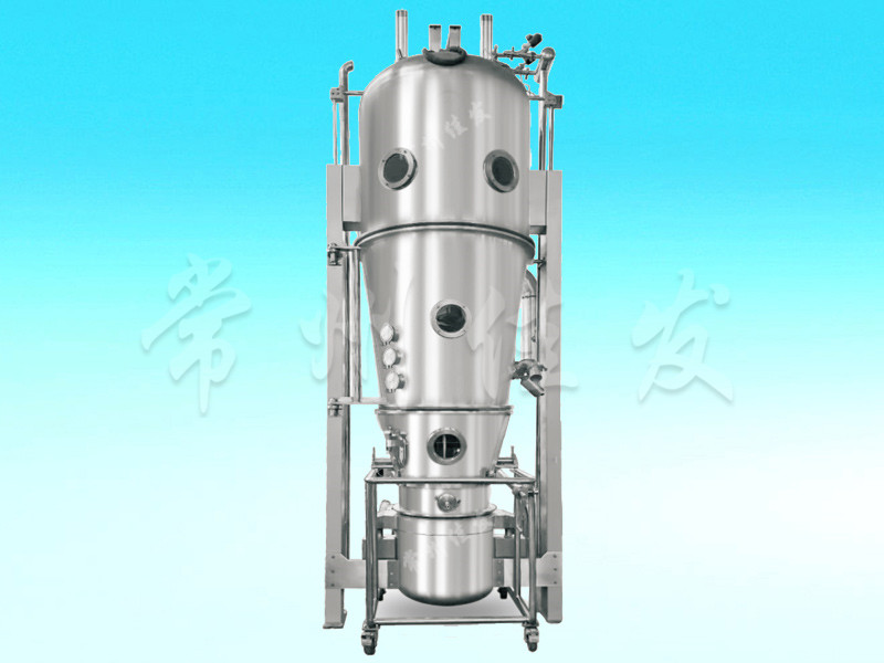 The cyclone fluidized bed granulation and coating machine is a fluidized bed with a blade structure, and the blades are inclined to a certain degree, allowing the airflow to pass through the gaps of the blades, forming a strong circulating airflow, causing the materials to move in a vortex like orderly manner. At the same time, the pneumatic nozzle installed on the side wall sprays the adhesive or coating liquid into the vortex like material layer, thereby turning the powder into particles or obtaining a continuous and uniform coating film.